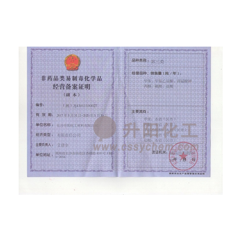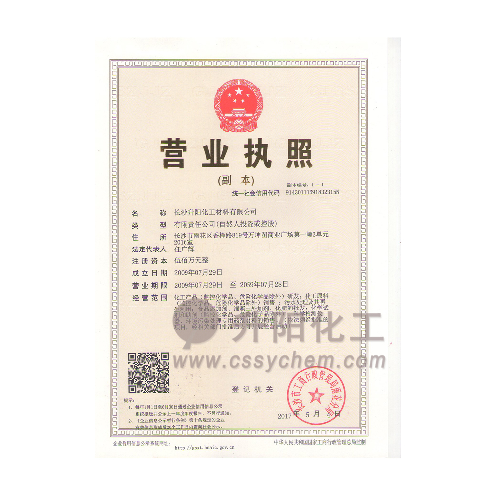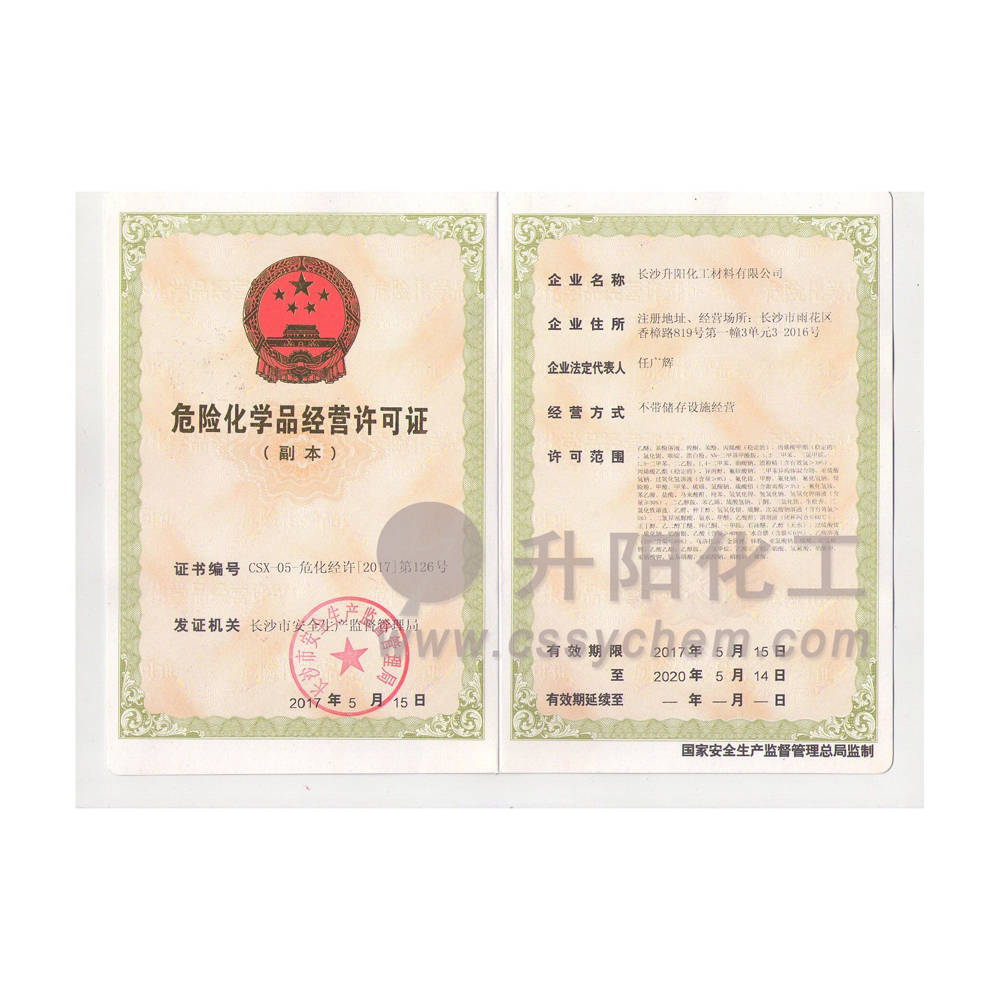 長沙升陽化工材料有限公司成立于2009年,是一家已經(jīng)擁有10年化工原料經(jīng)營歷史的企業(yè)。我們本著“服務(wù)至上,以誠為本”的原則,為廣大的新老客戶提供最優(yōu)質(zhì)的產(chǎn)品、最便捷的服務(wù)。歷經(jīng)10多年的積淀與發(fā)展,現(xiàn)已成長為湖南省頗具規(guī)模的專業(yè)化學(xué)品服務(wù)供應(yīng)商之一。?公司集貿(mào)易,科研,倉儲,物流為